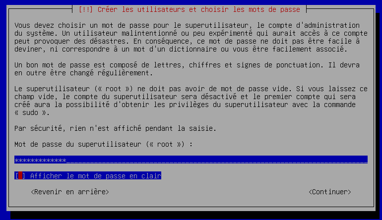 Ce mot de passe est le plus important, il correspond au mot de passe du super utilisateur "root" qui aura absolument tous les droits sur le serveur.