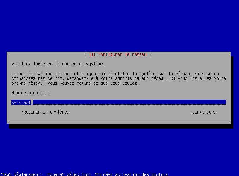 Nous arrivons maintenant à l'étape ou l'on doit "Indiquer le nom du système". Le nom du système correspond au nom de la machine.