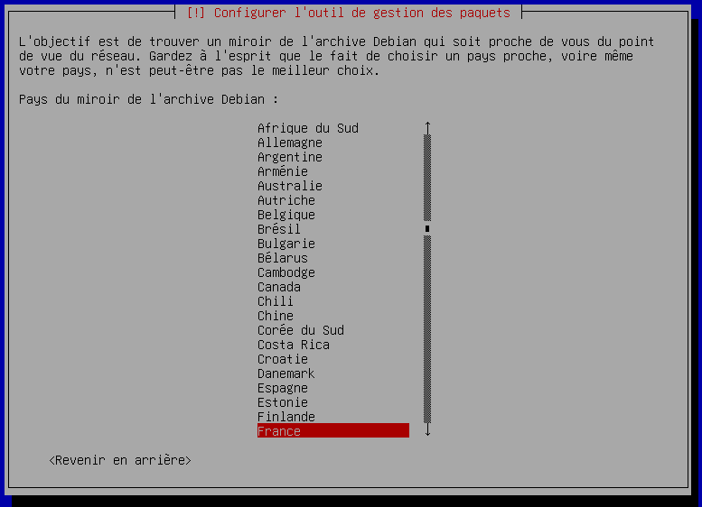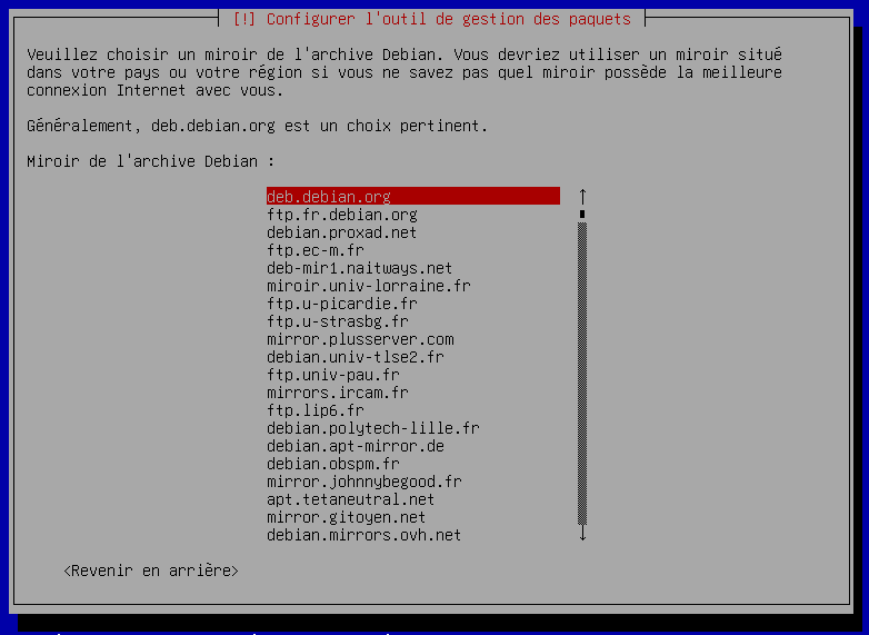 Comme indiqué l'objectif est de trouver un miroir (un serveur d'archive) proche de notre localisation pour optimiser le téléchargement des services installés.