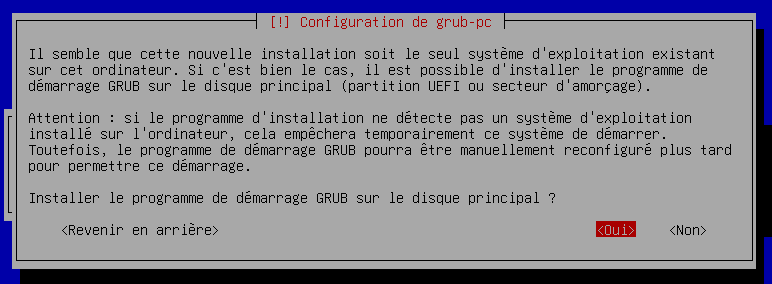 L'outil nous demande de sélectionner sur quel disque le programme de démarrage GRUB doit être installé.