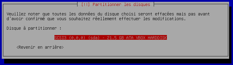Maintenant nous devons choisir quel est le disque principal du serveur.